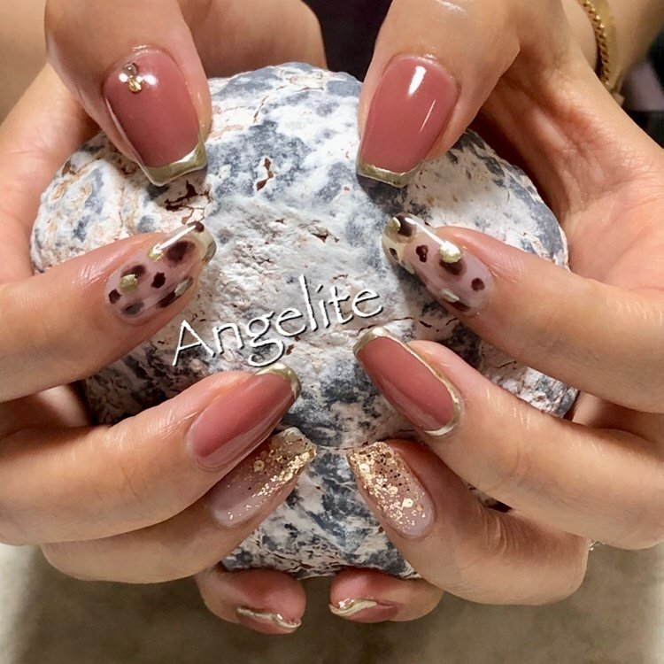 秋 ハンド ワンカラー アニマル柄 シースルー Angeliteのネイルデザイン No ネイルブック
